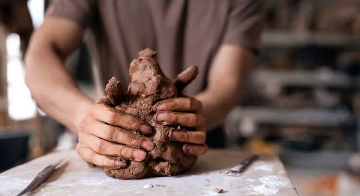 Refining raw clay through cleaning, mixing, and conditioning to achieve the perfect texture, strength, and consistency for smooth shaping and durable ceramic creations.